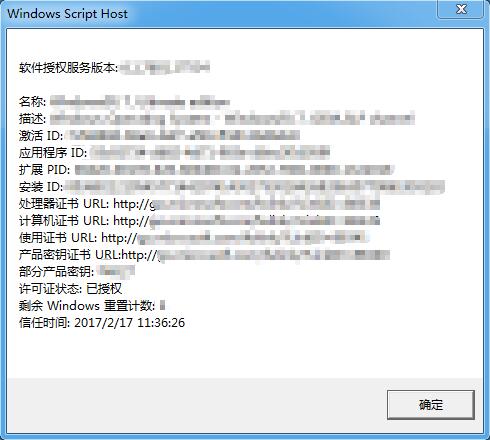 显示:操作系统版本、部分产品密钥、许可证状态
