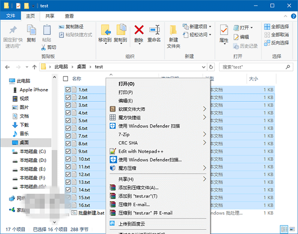 ▲图片说明:15个文件同时选中后的右键菜单(个别项目每台电脑或有不同)
