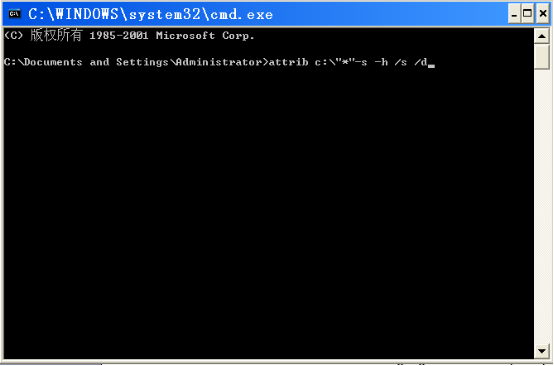这样就可把c盘下所以的文件夹隐藏属性都去掉。如果不是C盘,而是其它盘符,只需将attrib后面的C改为其它盘符即可。比如D盘中的所有根文件夹都被隐藏了,则在dos命令窗口输入