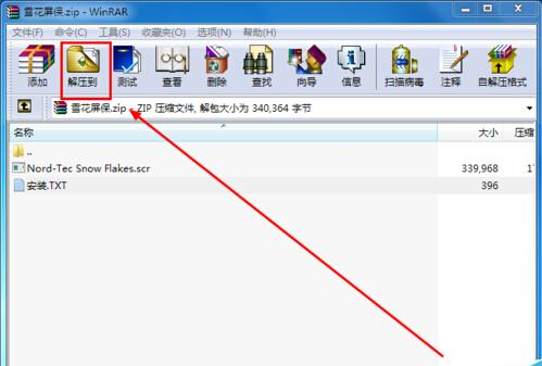 4、“雪花飘落屏保”下载完成后解压“雪花飘落屏保”压缩包。