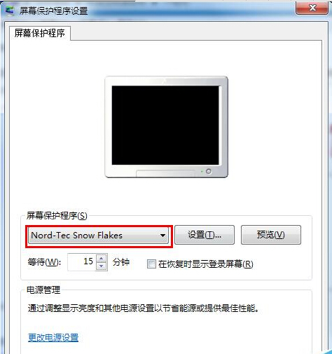 6、设置屏幕保护程序为Nord-Tec Snow Flakes.scr。