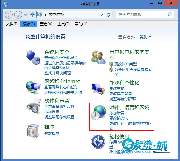 步骤一:同时按下Win+i组合键即可打开windows8系统的控制面板,如下图在控制面板中选择时钟、语言和区域这一项。