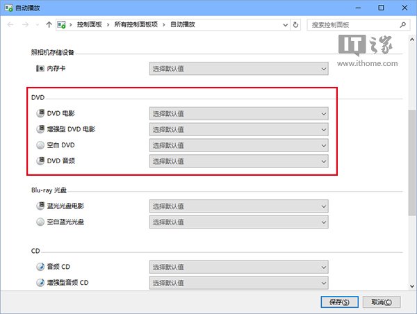 ③ 点击“保存”后,再次放入DVD光盘后就可以用Win10版DVD播放器自动播放了