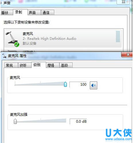 2、如果是麦克风没声音的情况,那就切换到“录制”选项卡中的“级别”一栏,同样也要确保麦克风的声音在开启状态;
