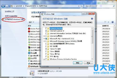 3、此时页面会出现一个“打开或关闭windows功能”的选项,在这里就能进行设置了。