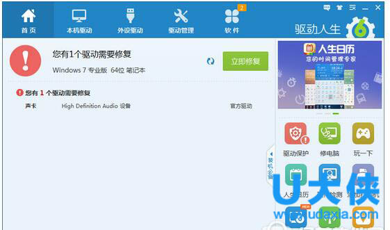 驱动人生解决电脑声卡驱动异常导致没声音方法: