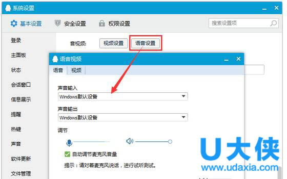 其次,软件设置问题(主要是语音视频设置的声音输入、输出设置不正确),比如常用的QQ软件。