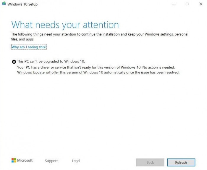 不幸的是,更新助手没有给出Windows 10 2019年5月更新遇到的问题细节。它只说明PC的驱动程序或服务尚未准备好支持Windows 10 2019年5月更新,一旦问题解决,将为用户重新提供Windows 10 2019年5月更新。