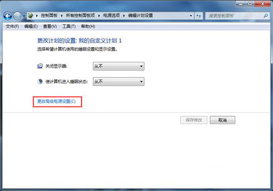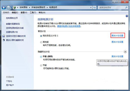 6、点击刚创建的电源自定义计划后面的更改计划设置,进一步详细的进行设置;如图所示: