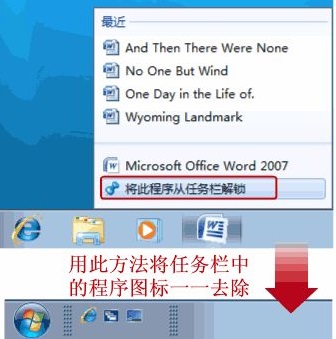 5、如果想去掉任务栏中的程序,可以右击程序图标,选将此程序从任务栏解锁。