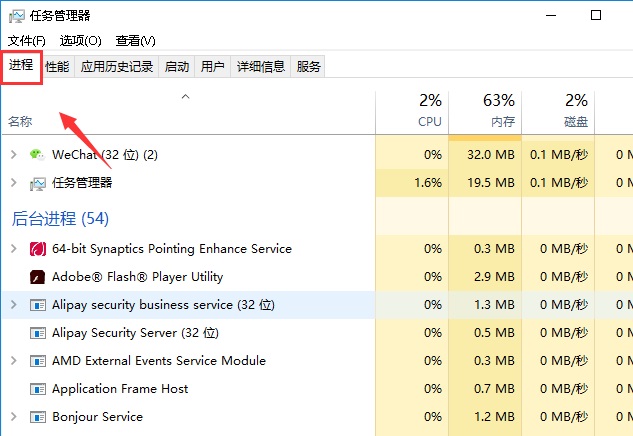 3、点击左上角的进程