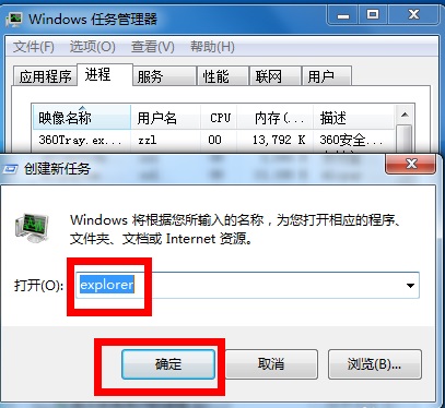 7、在运行窗口输入explorer。点击确定就OK啦