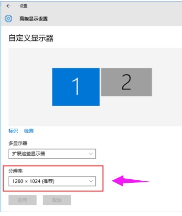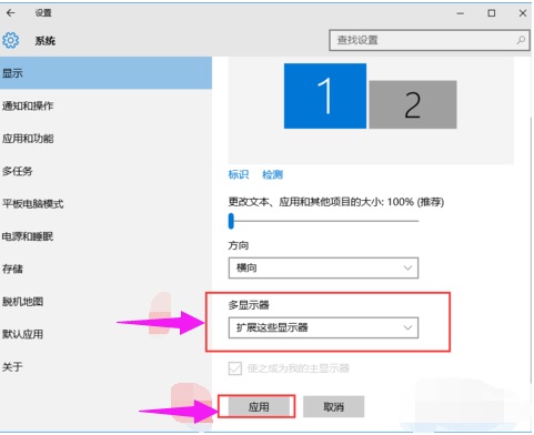 4,多显示器那边选择扩展这些显示器。点击应用。