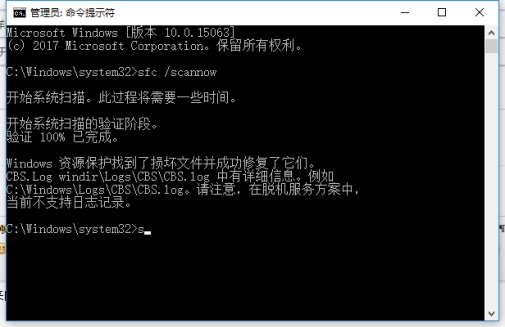 第一种方案:SFC检查系统完整性来尝试修复丢失文件
