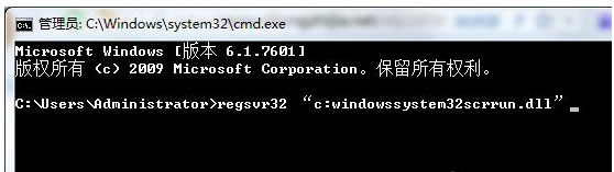 在cmd窗口中输入 regsvr32 “c:windowssystem32scrrun.dll”如果不行,请使用下面的方法: