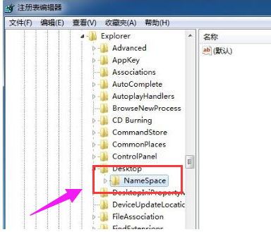 打开“注册表编辑器”后,在左侧依次展开“HKEY_LOCAL_MACHINESOFTWAREMicrosoftWindowsCurrentVersionExploreDesktopNamespace”