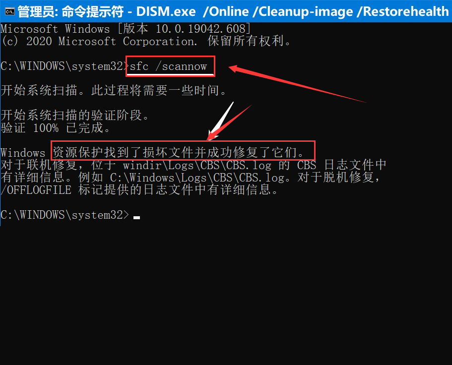 2、然后复制 sfc /scannow 命令到管理员命令提示符窗口中,按下键盘上的回车键,等待运行完成。