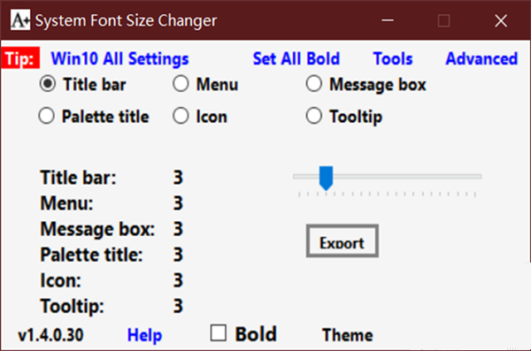 除了用编辑注册表的办法修改窗口组件字号外,我们还可以使用第三方工具软件System Font Size Changer for Windows 10来进行修改。在软件中选择要修改字号的项目,然后用滑动块调整字体的大小即可(图3)。