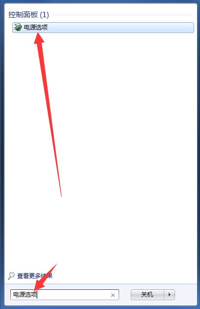 5、点击桌面左下角的开始菜单,在搜索栏中输入“电源选项”点击打开;