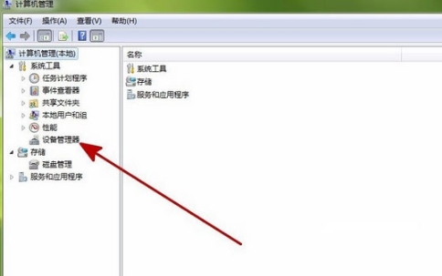 3、在计算机管理窗口中,找到“设备管理器”。如图所示: