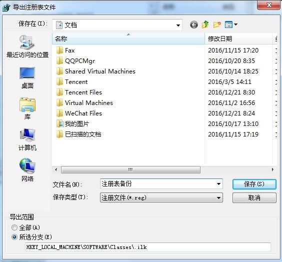 4、在“导出注册表文件”面板中选择要保存备份的文件夹位置,并输入名称;如图所示: