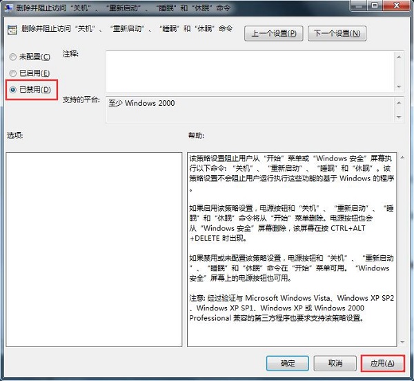 4、进入策略设置后,选择“已禁用”或者“未配置”,点击确定。