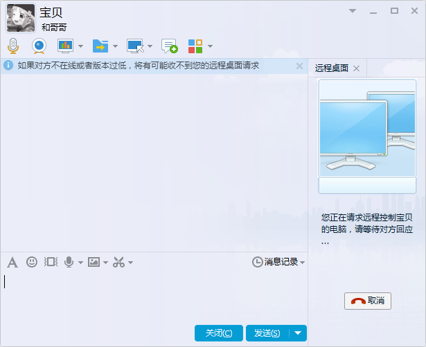 3、qq远程控制如何使用?如果对方不在线时,您申请的远程控制也会提示您对方不在线哦。
