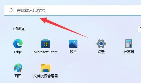 2、打开的开始菜单,点击顶部的在此键入以搜索