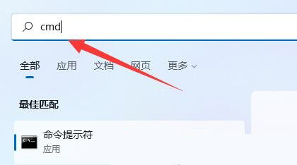 3、搜索 cmd 命令,这时候会出现系统给出的最佳匹配