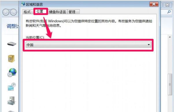 3、接着再打开“位置”选项卡,在这个界面,把当前位置设置为“中国”这一项。