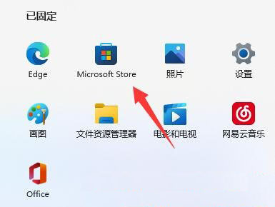 2、然后找到并点击已固定下的microsoft store(微软商店);