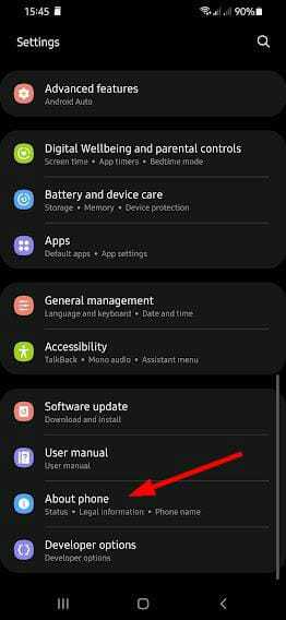 2、向下滚动并选择关于手机。