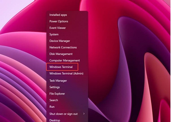 右键单击开始菜单按钮并选择WinTerminal。不需要管理员权限。