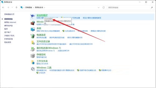 在右侧面板中,点击安全和维护的选项。