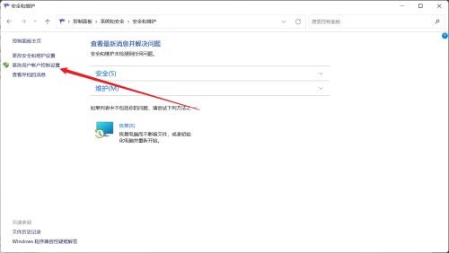 在左侧点击更改用户帐户控制设置的选项。