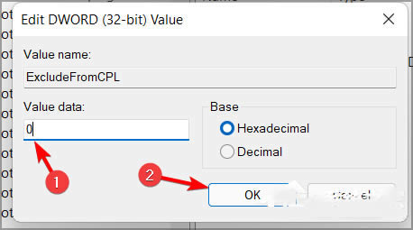 双击excludefromcpl dword。