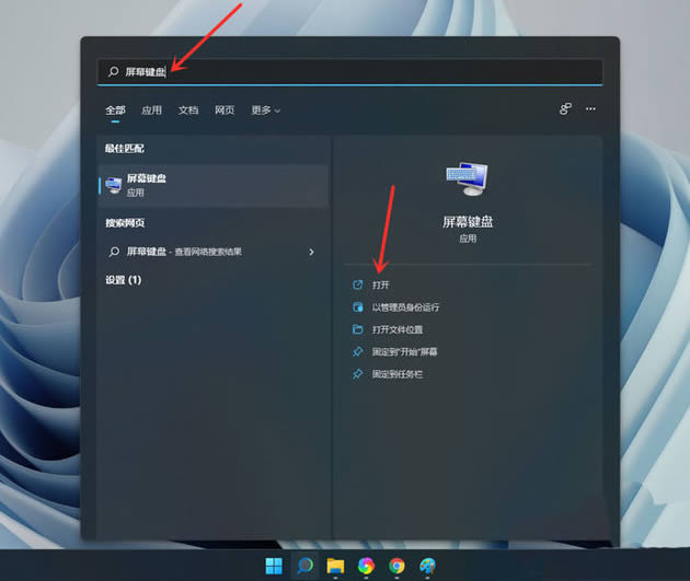 2、打开屏幕键盘,搜索【屏幕键盘】,点击右侧【打开】。