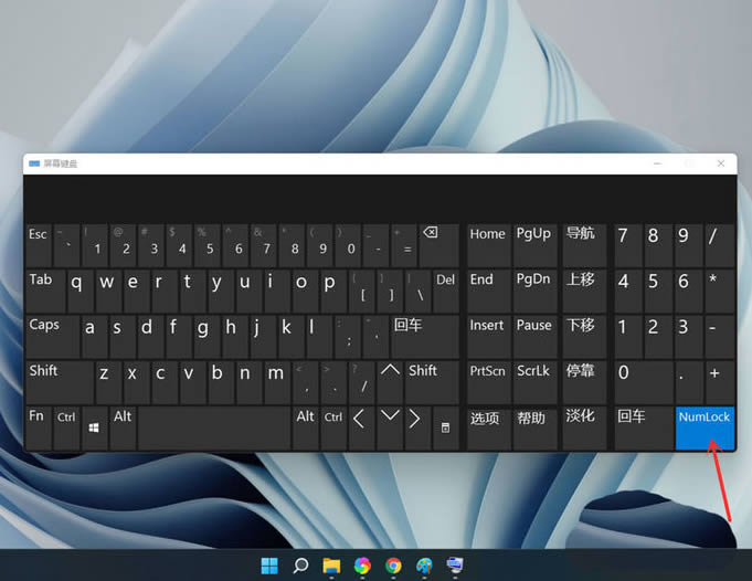 5、打开小键盘开关,点击【numlock】键,打开小键盘开关。