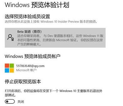 5、登录完成后重新回到预览体验计划,加入并选择“beta渠道”。
