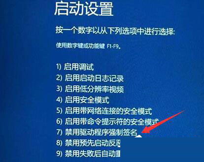6、最后按下“f7”禁用驱动程序强制签名即可。