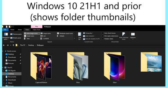 虽然Windows 11新的文件夹图标设计备受称赞,不过Windows 11 中的新文件夹图标已不再显示文件夹内容的预览缩略图,如下图所示: