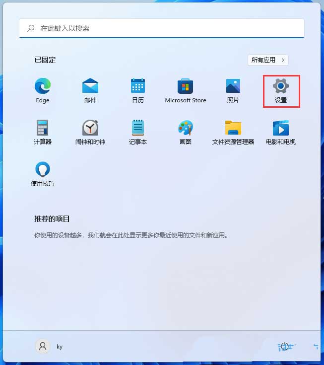 2、开始菜单窗口,点击所有应用下的设置(也可以按 win + i 组合键);