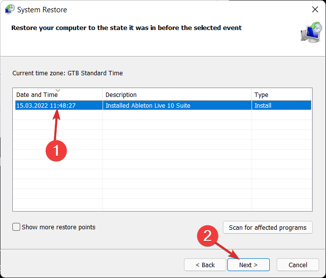 单击下一步,然后选择还原点以撤消对计算机的最新更改。而已!