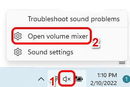 右键单击任务栏右上角的扬声器图标。从展开的菜单中,单击打开音量混合器选项。