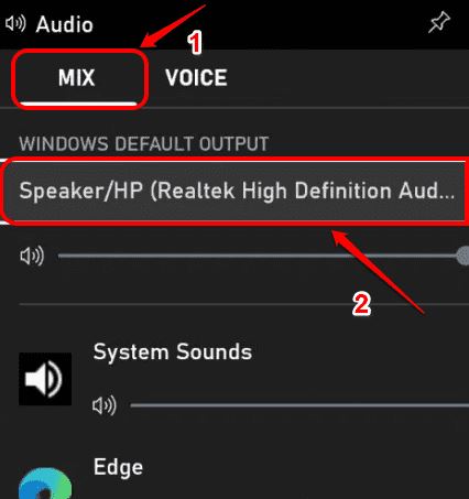在MIX选项卡下,针对WINDOWS DEFAULT OUTPUT下拉菜单,您只需单击一下即可设置首选输出设备。