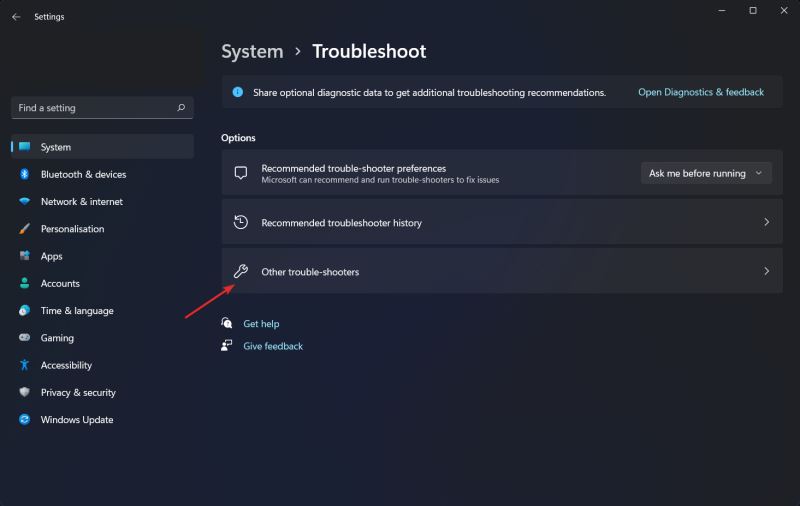 1、按住windows键 +并从左侧面板i导航到系统,然后是疑难解答。
