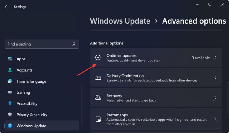 1、使用+快捷方式打开设置,然后从左侧导航到windows 更新部分,然后从右侧导航到高级选项。
