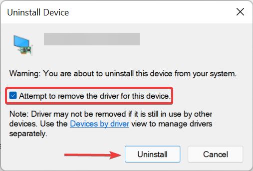 勾选Attempt to remove the driver for this device复选框,然后单击底部的卸载。