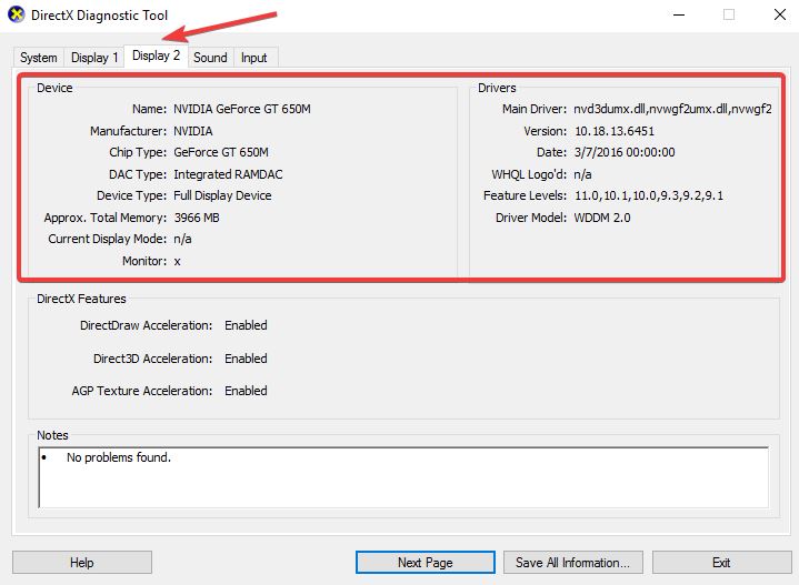 导航到显示选项卡,并检查有关已安装Nvidia 显卡的所有信息。