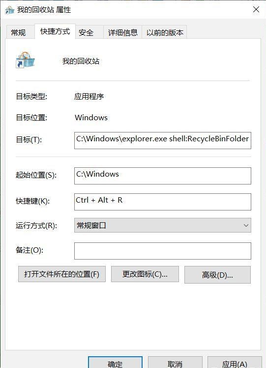 可以使用新建立的桌面快捷方式为回收站设置热键。通过这样做,就可以通过按热键快速打开回收站。